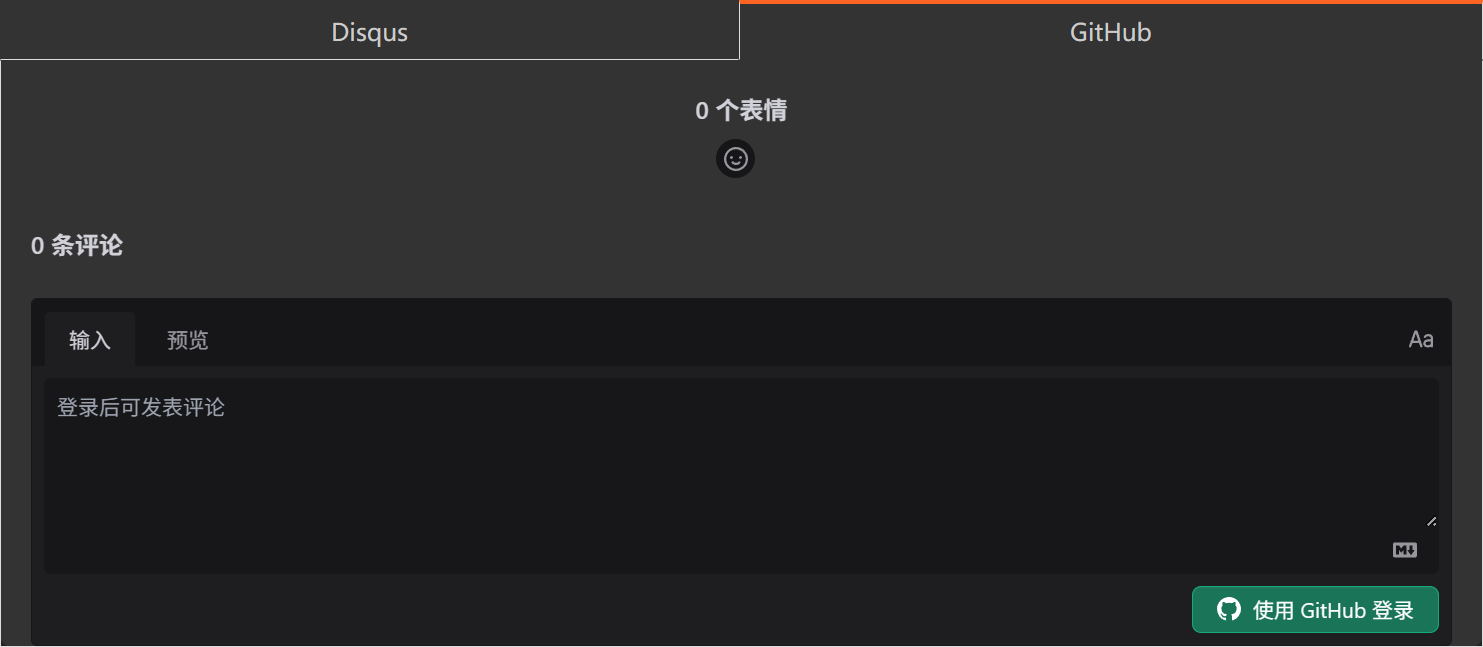 Giscus 自带的 preferred_color_scheme 主题支持自动切换 Github Light 和 Github Dark 两种主题,但是 Github Dark 主题的问题和上面 Disqus 类似,颜色和 NexT 的深色模式背景不搭。
